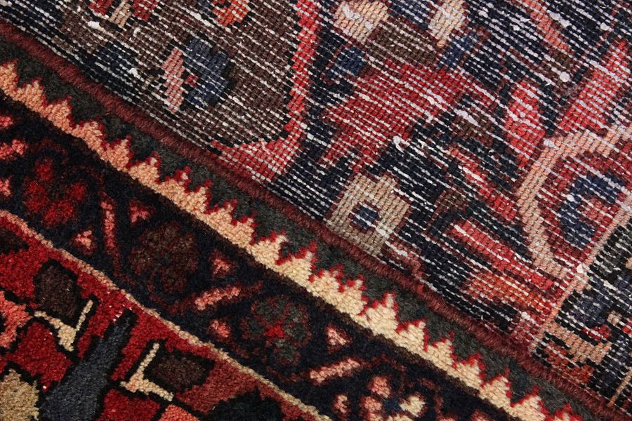 Abrash: Due to the different amount of grease in the wool and the added salt during the process of dyeing, the wool has got a varying colour absorbance. This is not very visible before weaving. During the weaving though, lines of the same colour are formed in the rug. This is called Abrash (which in Farsi means little cloud) and it shows that the wool was not manufactured using chemical means and marks the naturalness and authenticity of the rugs. Examples