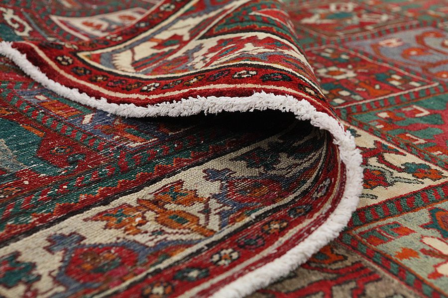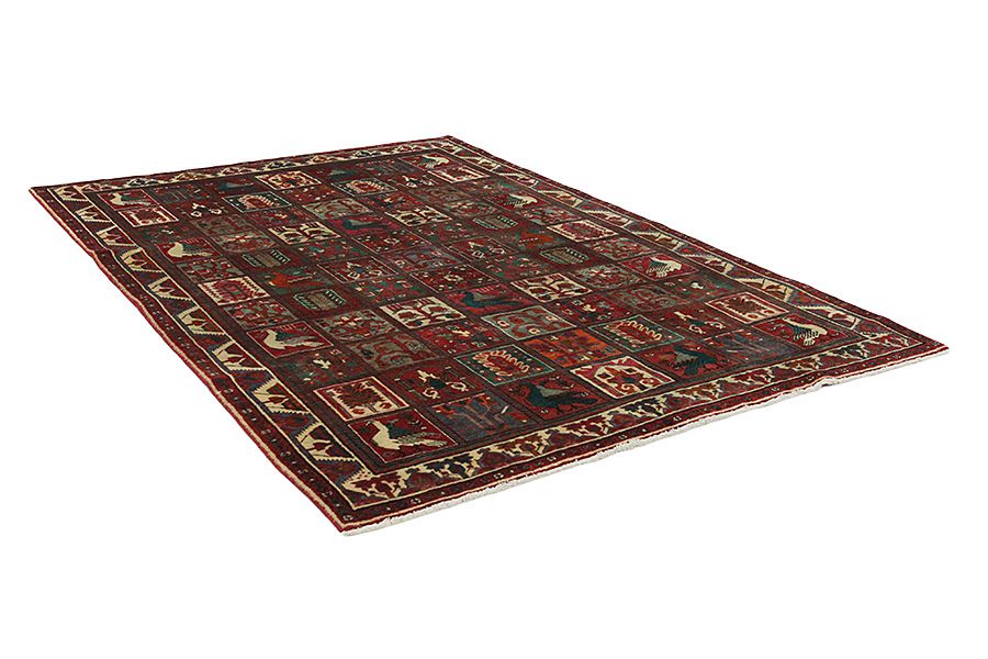 Bakhtiari Rugs : In the mountains Zagros, west of the city of Isfahan, around the town of Shahr-e-Kurd, live the nomads Bakhtiar. Their rugs are known for the design with various repeating squares in which flowers and animals are depicted. For this reason the design is called "garden"(Khesti). Their rugs are very durable with a dense weave and very good quality Persian wool coming from sheep grazing at a high altitude. The best Bakhtiari rugs with highest knot density are often called Bibibaff.