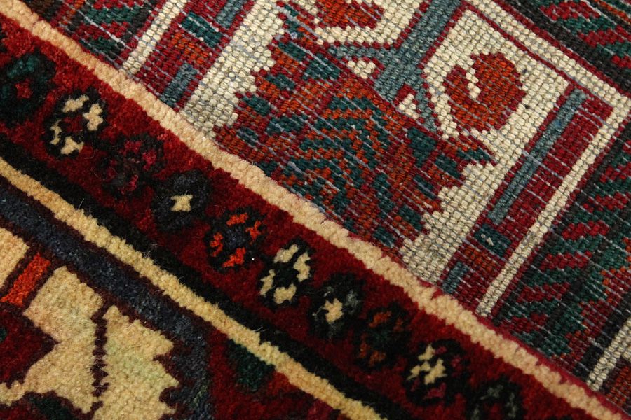 Abrash: Due to the different amount of grease in the wool and the added salt during the process of dyeing, the wool has got a varying colour absorbance. This is not very visible before weaving. During the weaving though, lines of the same colour are formed in the rug. This is called Abrash (which in Farsi means little cloud) and it shows that the wool was not manufactured using chemical means and marks the naturalness and authenticity of the rugs. Examples