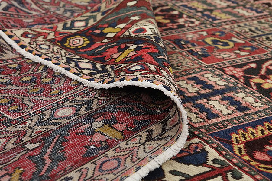 Bakhtiari Rugs : In the mountains Zagros, west of the city of Isfahan, around the town of Shahr-e-Kurd, live the nomads Bakhtiar. Their rugs are known for the design with various repeating squares in which flowers and animals are depicted. For this reason the design is called "garden"(Khesti). Their rugs are very durable with a dense weave and very good quality Persian wool coming from sheep grazing at a high altitude. The best Bakhtiari rugs with highest knot density are often called Bibibaff.