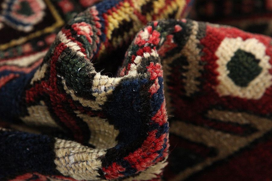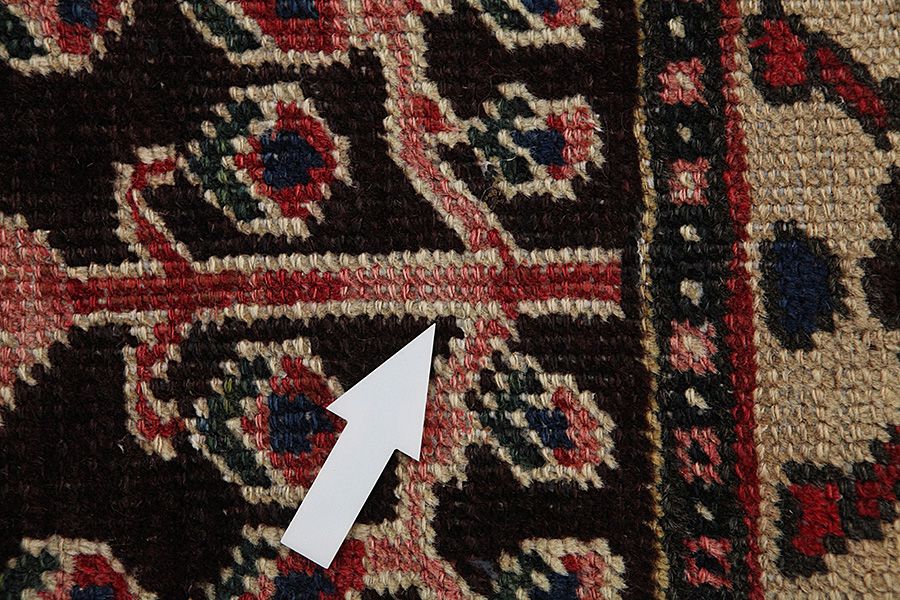 Abrash: Due to the different amount of grease in the wool and the added salt during the process of dyeing, the wool has got a varying colour absorbance. This is not very visible before weaving. During the weaving though, lines of the same colour are formed in the rug. This is called Abrash (which in Farsi means little cloud) and it shows that the wool was not manufactured using chemical means and marks the naturalness and authenticity of the rugs. Examples