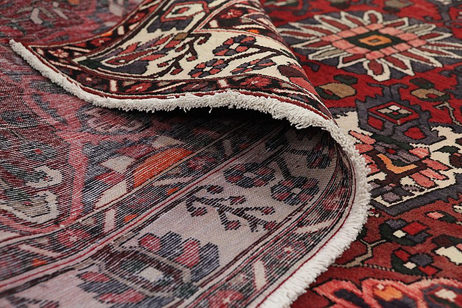 Abrash: Due to the different amount of grease in the wool and the added salt during the process of dyeing, the wool has got a varying colour absorbance. This is not very visible before weaving. During the weaving though, lines of the same colour are formed in the rug. This is called Abrash (which in Farsi means little cloud) and it shows that the wool was not manufactured using chemical means and marks the naturalness and authenticity of the rugs. Examples