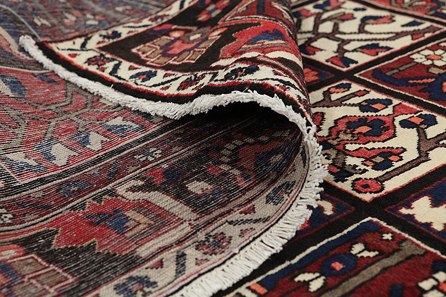 Bakhtiari Rugs : In the mountains Zagros, west of the city of Isfahan, around the town of Shahr-e-Kurd, live the nomads Bakhtiar. Their rugs are known for the design with various repeating squares in which flowers and animals are depicted. For this reason the design is called "garden"(Khesti). Their rugs are very durable with a dense weave and very good quality Persian wool coming from sheep grazing at a high altitude. The best Bakhtiari rugs with highest knot density are often called Bibibaff.