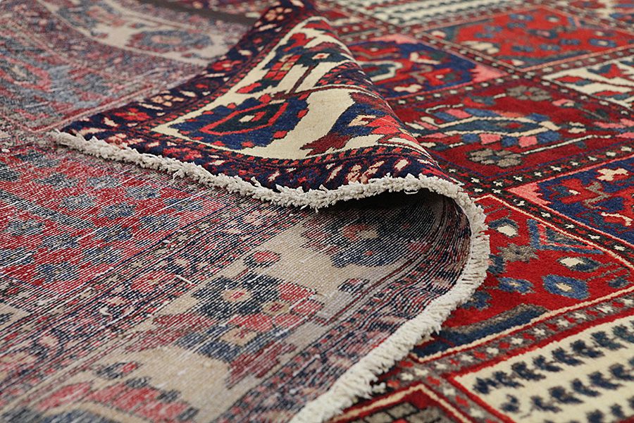 Bakhtiari Rugs : In the mountains Zagros, west of the city of Isfahan, around the town of Shahr-e-Kurd, live the nomads Bakhtiar. Their rugs are known for the design with various repeating squares in which flowers and animals are depicted. For this reason the design is called "garden"(Khesti). Their rugs are very durable with a dense weave and very good quality Persian wool coming from sheep grazing at a high altitude. The best Bakhtiari rugs with highest knot density are often called Bibibaff.