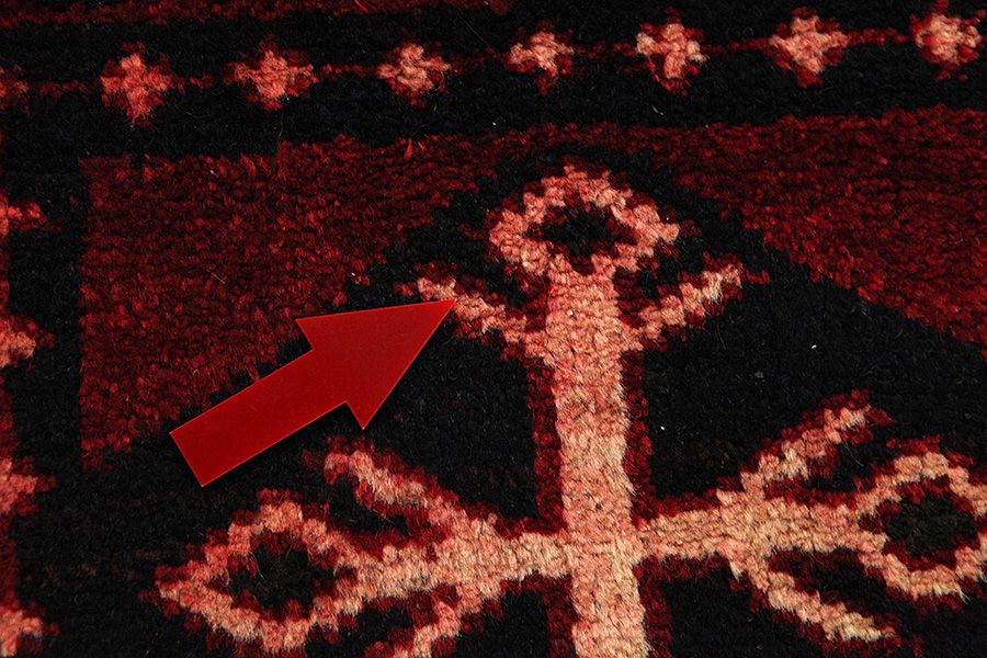 Abrash: Due to the different amount of grease in the wool and the added salt during the process of dyeing, the wool has got a varying colour absorbance. This is not very visible before weaving. During the weaving though, lines of the same colour are formed in the rug. This is called Abrash (which in Farsi means little cloud) and it shows that the wool was not manufactured using chemical means and marks the naturalness and authenticity of the rugs. Examples