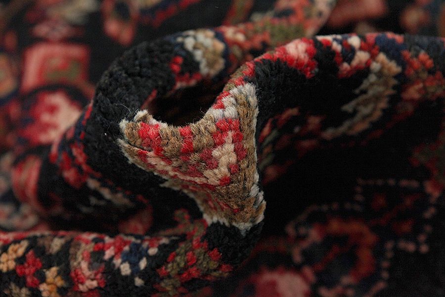 Abrash: Due to the different amount of grease in the wool and the added salt during the process of dyeing, the wool has got a varying colour absorbance. This is not very visible before weaving. During the weaving though, lines of the same colour are formed in the rug. This is called Abrash (which in Farsi means little cloud) and it shows that the wool was not manufactured using chemical means and marks the naturalness and authenticity of the rugs. Examples