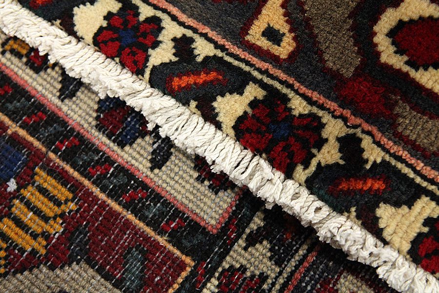 Abrash: Due to the different amount of grease in the wool and the added salt during the process of dyeing, the wool has got a varying colour absorbance. This is not very visible before weaving. During the weaving though, lines of the same colour are formed in the rug. This is called Abrash (which in Farsi means little cloud) and it shows that the wool was not manufactured using chemical means and marks the naturalness and authenticity of the rugs. Examples