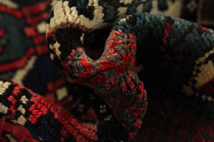 Abrash: Due to the different amount of grease in the wool and the added salt during the process of dyeing, the wool has got a varying colour absorbance. This is not very visible before weaving. During the weaving though, lines of the same colour are formed in the rug. This is called Abrash (which in Farsi means little cloud) and it shows that the wool was not manufactured using chemical means and marks the naturalness and authenticity of the rugs. Examples