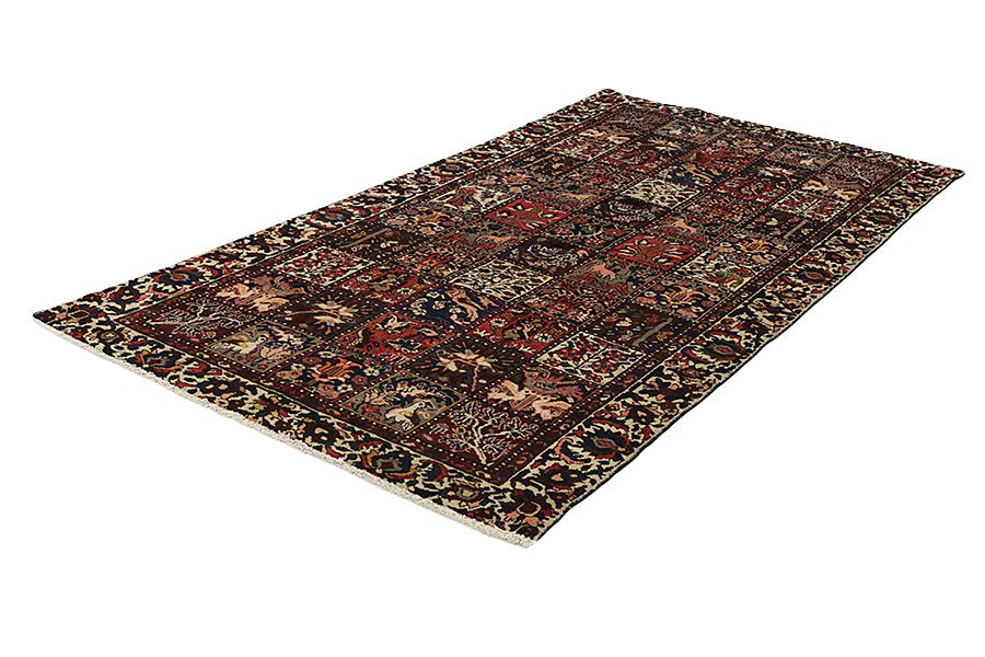 Bakhtiari Rugs : In the mountains Zagros, west of the city of Isfahan, around the town of Shahr-e-Kurd, live the nomads Bakhtiar. Their rugs are known for the design with various repeating squares in which flowers and animals are depicted. For this reason the design is called "garden"(Khesti). Their rugs are very durable with a dense weave and very good quality Persian wool coming from sheep grazing at a high altitude. The best Bakhtiari rugs with highest knot density are often called Bibibaff.