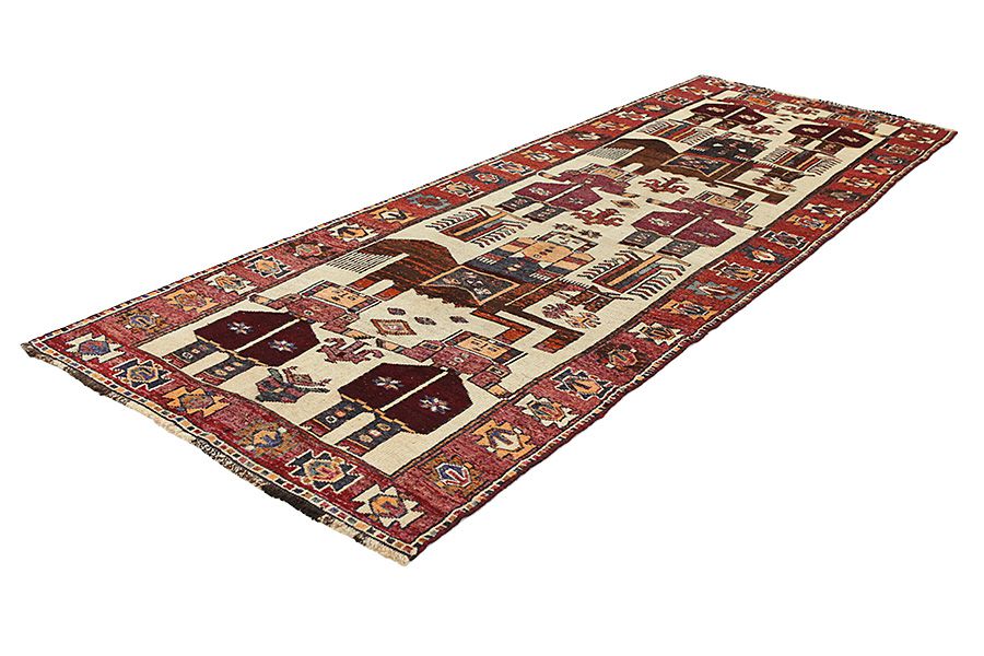 Nomadic rugs: Rugs woven by nomads. Nomads move continuously and do not stay permanently in one geographic region. They manufacture (weave) handmade rugs on collapsible looms. Due to that fact there may be slight variations in weaving and their rugs are sometimes uneven in shape. Also the weaving is made from memory and it depends on each artisans momentary inspiration. As a result, the designs in some rugs are not even on the entire surface.