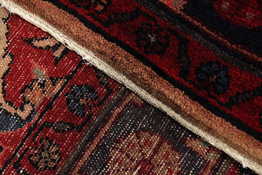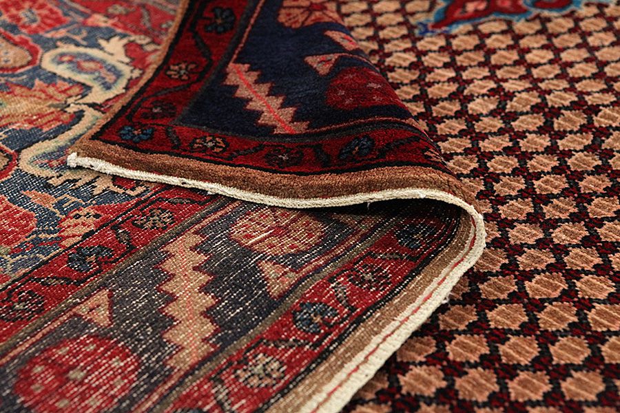 Abrash: Due to the different amount of grease in the wool and the added salt during the process of dyeing, the wool has got a varying colour absorbance. This is not very visible before weaving. During the weaving though, lines of the same colour are formed in the rug. This is called Abrash (which in Farsi means little cloud) and it shows that the wool was not manufactured using chemical means and marks the naturalness and authenticity of the rugs. Examples