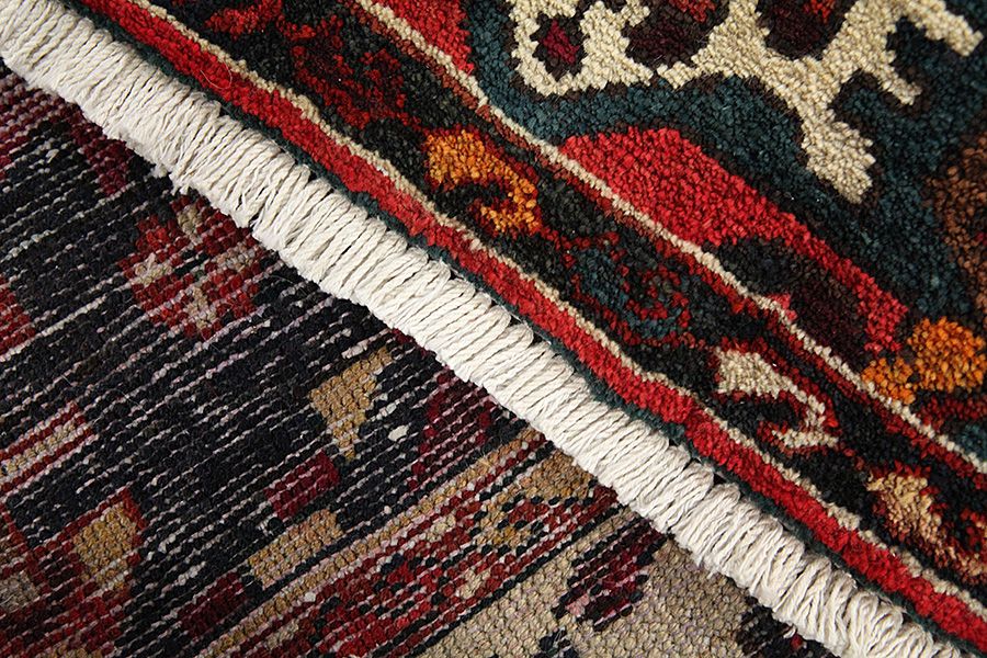Abrash: Due to the different amount of grease in the wool and the added salt during the process of dyeing, the wool has got a varying colour absorbance. This is not very visible before weaving. During the weaving though, lines of the same colour are formed in the rug. This is called Abrash (which in Farsi means little cloud) and it shows that the wool was not manufactured using chemical means and marks the naturalness and authenticity of the rugs. Examples