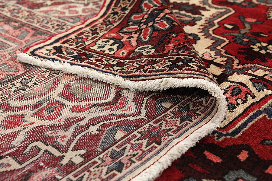Abrash: Due to the different amount of grease in the wool and the added salt during the process of dyeing, the wool has got a varying colour absorbance. This is not very visible before weaving. During the weaving though, lines of the same colour are formed in the rug. This is called Abrash (which in Farsi means little cloud) and it shows that the wool was not manufactured using chemical means and marks the naturalness and authenticity of the rugs. Examples