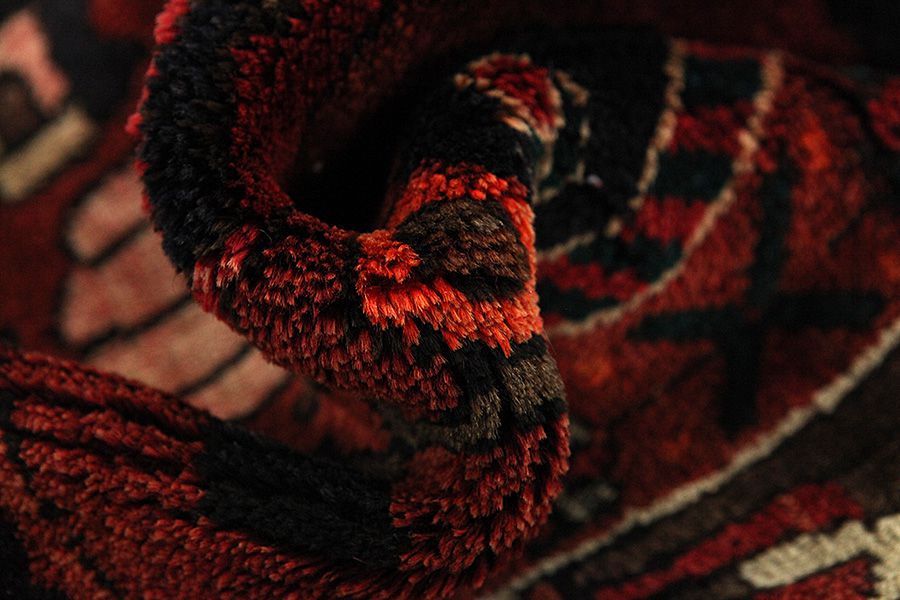 Abrash: Due to the different amount of grease in the wool and the added salt during the process of dyeing, the wool has got a varying colour absorbance. This is not very visible before weaving. During the weaving though, lines of the same colour are formed in the rug. This is called Abrash (which in Farsi means little cloud) and it shows that the wool was not manufactured using chemical means and marks the naturalness and authenticity of the rugs. Examples