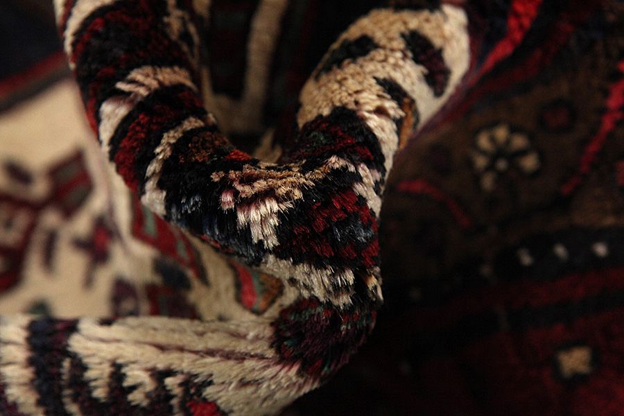 Abrash: Due to the different amount of grease in the wool and the added salt during the process of dyeing, the wool has got a varying colour absorbance. This is not very visible before weaving. During the weaving though, lines of the same colour are formed in the rug. This is called Abrash (which in Farsi means little cloud) and it shows that the wool was not manufactured using chemical means and marks the naturalness and authenticity of the rugs. Examples