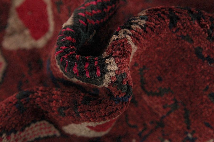 Abrash: Due to the different amount of grease in the wool and the added salt during the process of dyeing, the wool has got a varying colour absorbance. This is not very visible before weaving. During the weaving though, lines of the same colour are formed in the rug. This is called Abrash (which in Farsi means little cloud) and it shows that the wool was not manufactured using chemical means and marks the naturalness and authenticity of the rugs. Examples