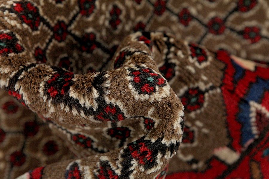 Abrash: Due to the different amount of grease in the wool and the added salt during the process of dyeing, the wool has got a varying colour absorbance. This is not very visible before weaving. During the weaving though, lines of the same colour are formed in the rug. This is called Abrash (which in Farsi means little cloud) and it shows that the wool was not manufactured using chemical means and marks the naturalness and authenticity of the rugs. Examples
