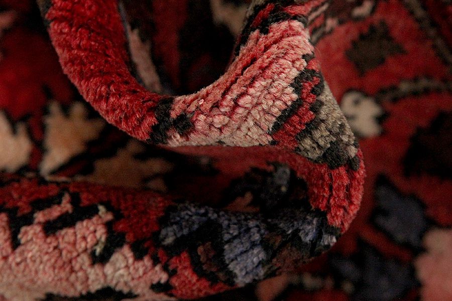 Abrash: Due to the different amount of grease in the wool and the added salt during the process of dyeing, the wool has got a varying colour absorbance. This is not very visible before weaving. During the weaving though, lines of the same colour are formed in the rug. This is called Abrash (which in Farsi means little cloud) and it shows that the wool was not manufactured using chemical means and marks the naturalness and authenticity of the rugs. Examples