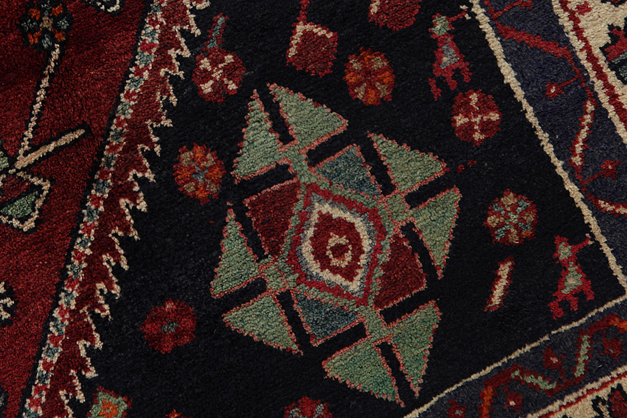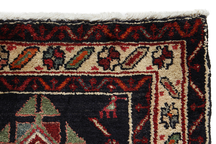 Qashqai Rugs : Qashqai rugs are woven by nomads who live in the mountainous areas of Southwest Persia, the provinces of Fars, Khuzestan, south of Isfahan and around the city Shiraz. Their rugs have a high knot density and a wide variety of designs, usually in deep red and blue colours. They weave rugs, Kilims and decorative textiles (ribbons, bags, etc.), which depict scenes from their lives with various representation of humans, animals, birds, trees and flowers.