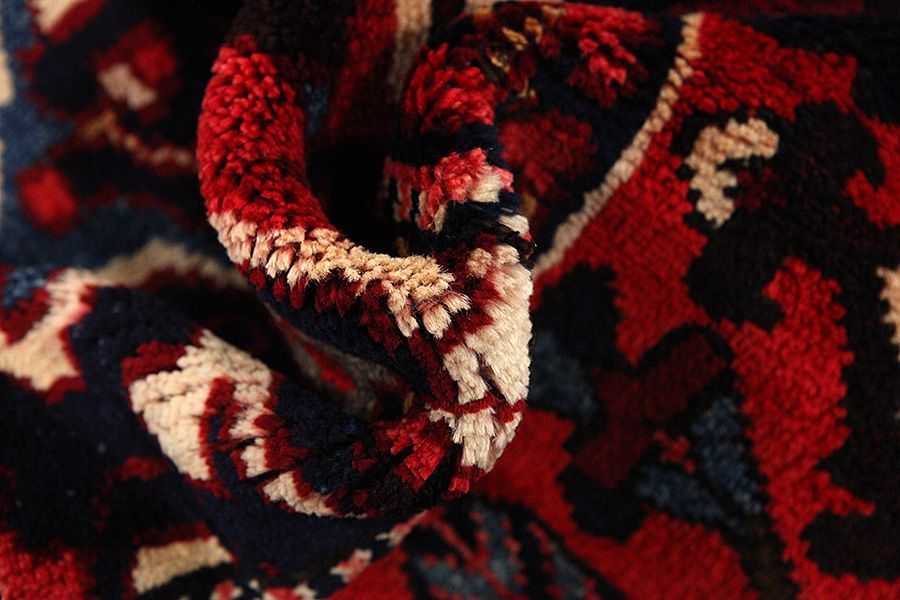 Abrash: Due to the different amount of grease in the wool and the added salt during the process of dyeing, the wool has got a varying colour absorbance. This is not very visible before weaving. During the weaving though, lines of the same colour are formed in the rug. This is called Abrash (which in Farsi means little cloud) and it shows that the wool was not manufactured using chemical means and marks the naturalness and authenticity of the rugs. Examples