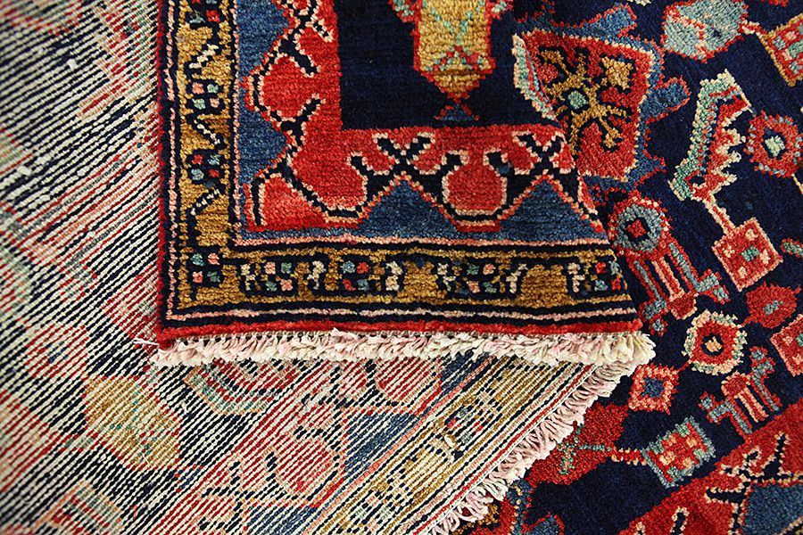 Abrash: Due to the different amount of grease in the wool and the added salt during the process of dyeing, the wool has got a varying colour absorbance. This is not very visible before weaving. During the weaving though, lines of the same colour are formed in the rug. This is called Abrash (which in Farsi means little cloud) and it shows that the wool was not manufactured using chemical means and marks the naturalness and authenticity of the rugs. Examples