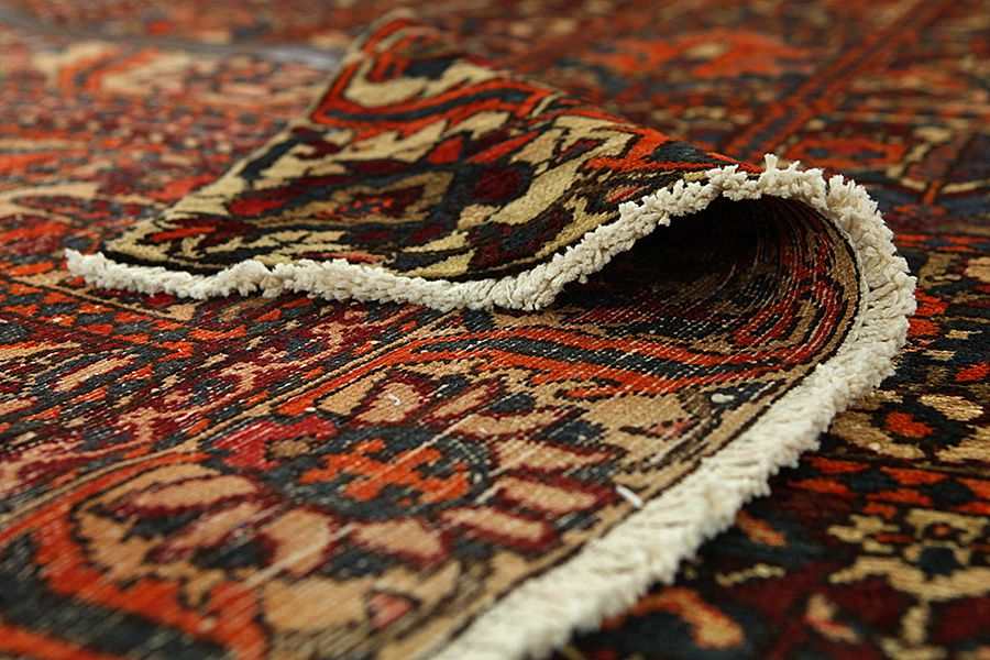 Abrash: Due to the different amount of grease in the wool and the added salt during the process of dyeing, the wool has got a varying colour absorbance. This is not very visible before weaving. During the weaving though, lines of the same colour are formed in the rug. This is called Abrash (which in Farsi means little cloud) and it shows that the wool was not manufactured using chemical means and marks the naturalness and authenticity of the rugs. Examples