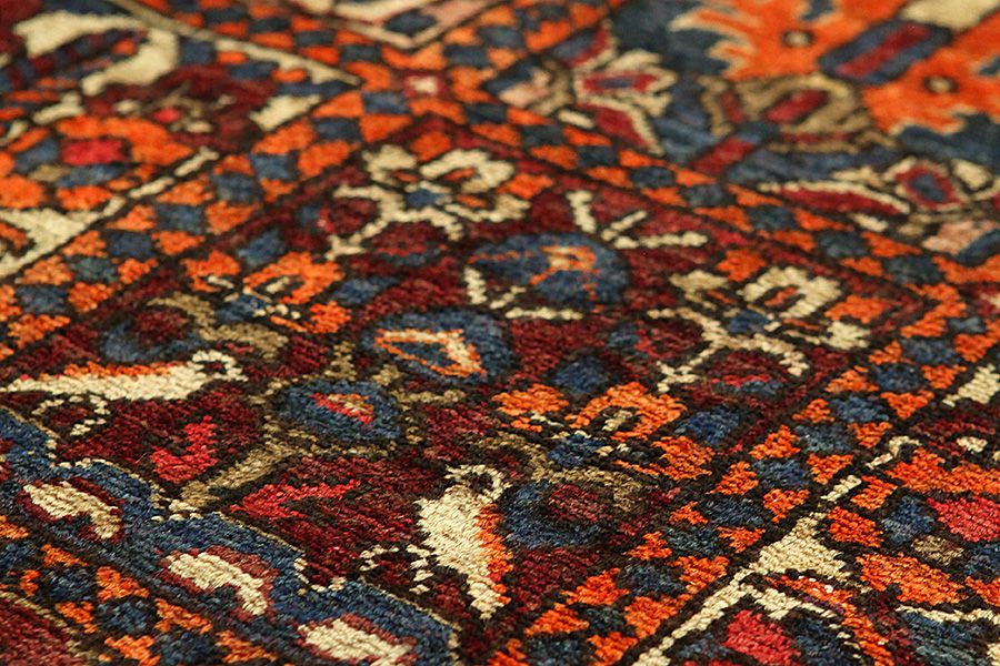 Bakhtiari Rugs : In the mountains Zagros, west of the city of Isfahan, around the town of Shahr-e-Kurd, live the nomads Bakhtiar. Their rugs are known for the design with various repeating squares in which flowers and animals are depicted. For this reason the design is called "garden"(Khesti). Their rugs are very durable with a dense weave and very good quality Persian wool coming from sheep grazing at a high altitude. The best Bakhtiari rugs with highest knot density are often called Bibibaff.