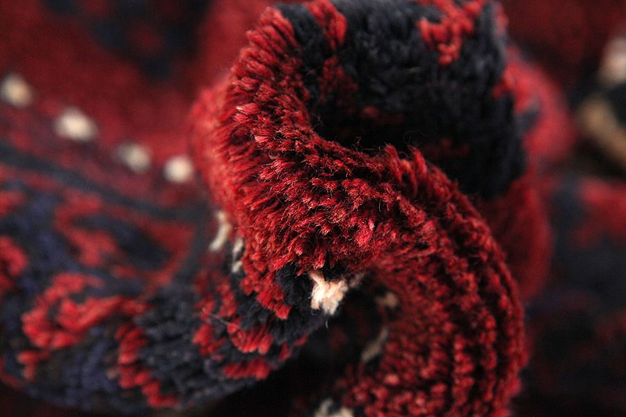 Abrash: Due to the different amount of grease in the wool and the added salt during the process of dyeing, the wool has got a varying colour absorbance. This is not very visible before weaving. During the weaving though, lines of the same colour are formed in the rug. This is called Abrash (which in Farsi means little cloud) and it shows that the wool was not manufactured using chemical means and marks the naturalness and authenticity of the rugs. Examples