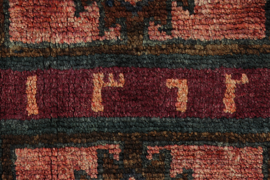 Abrash: Due to the different amount of grease in the wool and the added salt during the process of dyeing, the wool has got a varying colour absorbance. This is not very visible before weaving. During the weaving though, lines of the same colour are formed in the rug. This is called Abrash (which in Farsi means little cloud) and it shows that the wool was not manufactured using chemical means and marks the naturalness and authenticity of the rugs. Examples