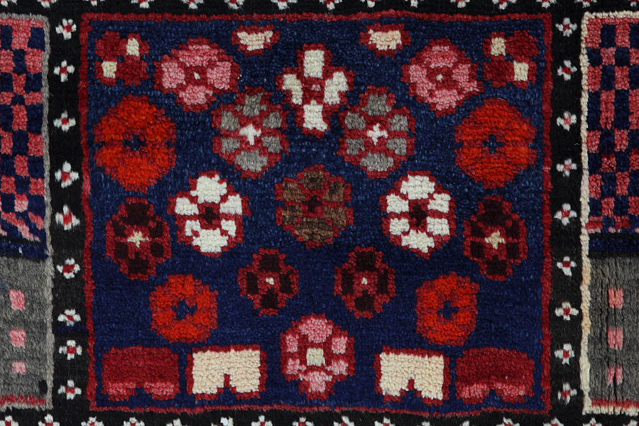 Bakhtiari Rugs : In the mountains Zagros, west of the city of Isfahan, around the town of Shahr-e-Kurd, live the nomads Bakhtiar. Their rugs are known for the design with various repeating squares in which flowers and animals are depicted. For this reason the design is called "garden"(Khesti). Their rugs are very durable with a dense weave and very good quality Persian wool coming from sheep grazing at a high altitude. The best Bakhtiari rugs with highest knot density are often called Bibibaff.