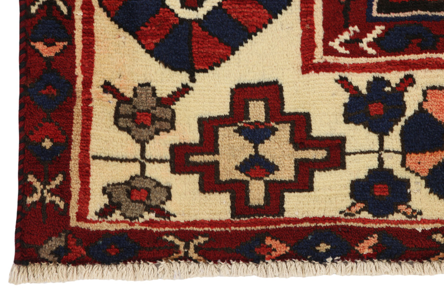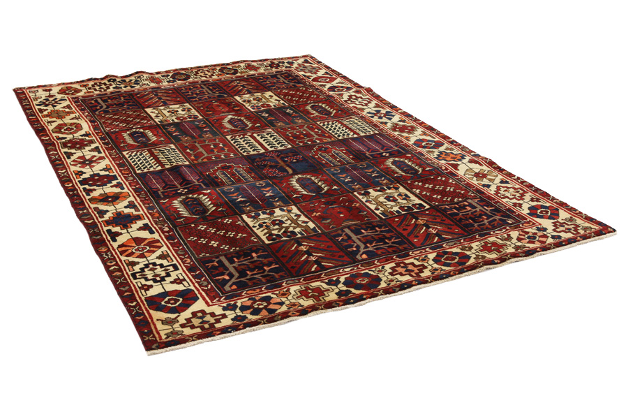 Bakhtiari Rugs : In the mountains Zagros, west of the city of Isfahan, around the town of Shahr-e-Kurd, live the nomads Bakhtiar. Their rugs are known for the design with various repeating squares in which flowers and animals are depicted. For this reason the design is called "garden"(Khesti). Their rugs are very durable with a dense weave and very good quality Persian wool coming from sheep grazing at a high altitude. The best Bakhtiari rugs with highest knot density are often called Bibibaff.