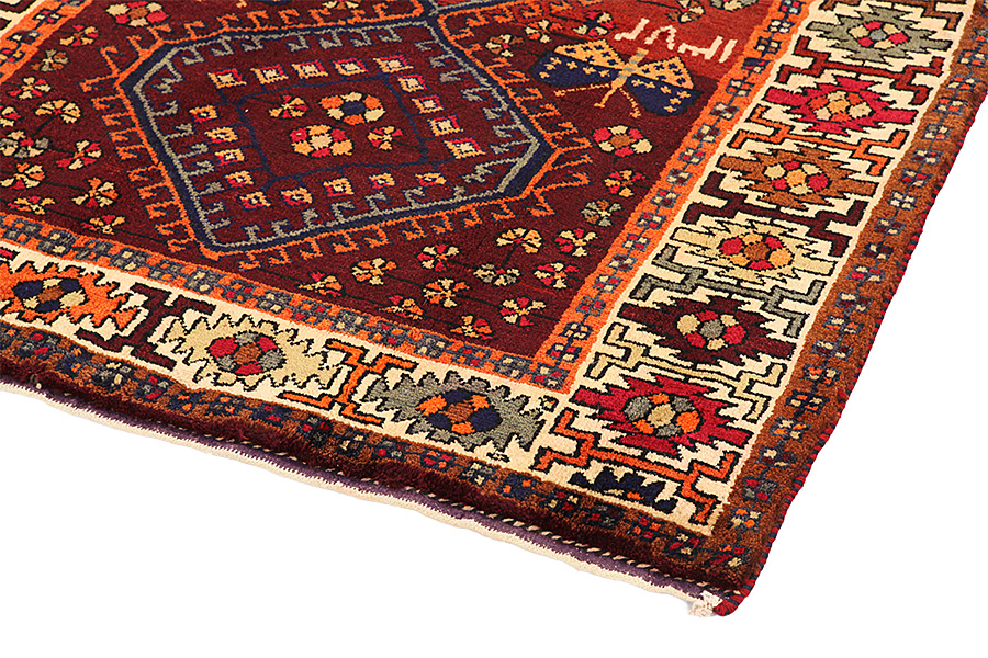 Lori Rugs : Rugs woven by the Lurs, a nomadic tribe in the mountainous Kurdish region of Southwest Iran, bordering Iraq. The Lori rugs usually have geometric shapes, often with rhombi and strictly linear scenes of the herbal and animal world. Because the areas where the Lurs live are inaccessible and isolated, they still weave with the old traditional ways, without influences from the Europeans. The centre of Luristan is Choremabad, which gave its name to the rugs woven there. Furthermore rugs have been named after the salt lake Neris.