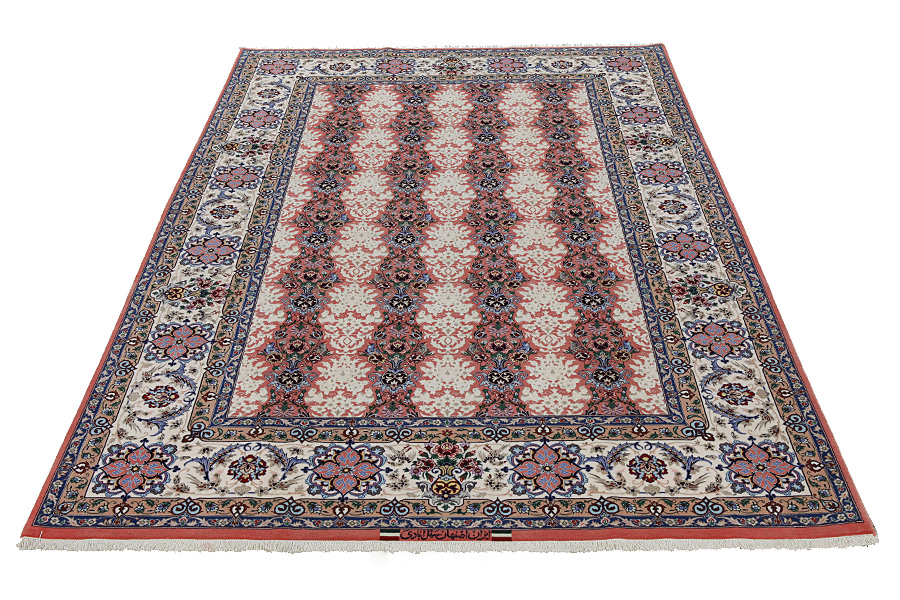 Isfahan Rugs : In the centre of Iran among the Zagros Mountains and the desert, lies the city of Isfahan. Nowadays it is an important industrial city with a population of 1.2 million. The town is an architectural masterpiece. The old rugs of Isfahan incontrast with the newer ones didn't have got a central medallion. The entire surface of the rug was filled with elaborate spiral flowers and flower palmettes. The newer Isfahan rugs cannot be compared with those wonderful old specimens which were manufactured exclusively for nobles. But continuing the tradition, today's rugs of Isfahan also have a very fine weave and are clipped very short to reveal their design more clearly. In the weaving they also use silk to highlight certain areas of the design, especially in flowers. The warp is made of silk or cotton.