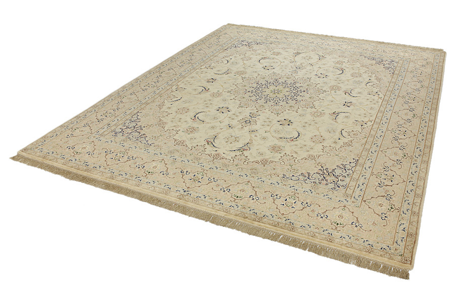 Isfahan Rugs : In the centre of Iran among the Zagros Mountains and the desert, lies the city of Isfahan. Nowadays it is an important industrial city with a population of 1.2 million. The town is an architectural masterpiece. The old rugs of Isfahan incontrast with the newer ones didn't have got a central medallion. The entire surface of the rug was filled with elaborate spiral flowers and flower palmettes. The newer Isfahan rugs cannot be compared with those wonderful old specimens which were manufactured exclusively for nobles. But continuing the tradition, today's rugs of Isfahan also have a very fine weave and are clipped very short to reveal their design more clearly. In the weaving they also use silk to highlight certain areas of the design, especially in flowers. The warp is made of silk or cotton.