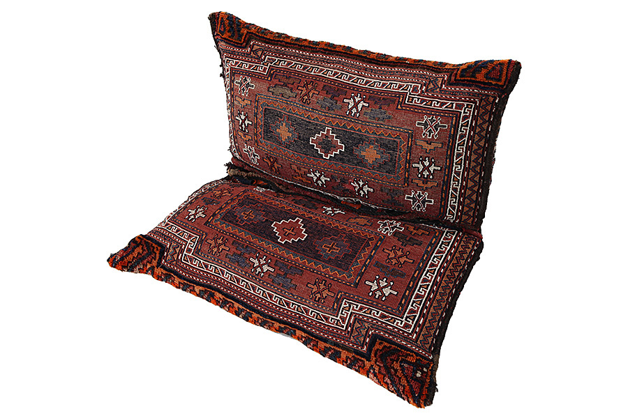 Saddle Bag Rugs : ​Horse saddle bags are made by Nomads for their own use. One can distinguish between the kilim-horse saddle bags and the knotted horse saddle bags. The front side of a knotted horse saddle bag is either knotted like a common rug with knots or different mixed techniques are used. The colours horse bags are dyed with are all natural and made by the Nomads themselves. Bags like these once carried everyday necessities for travelers on donkeys or horses. A delightful piece of art that provides a unique oriental atmosphere to your home. Horse saddle bags can be used as a seat cushion, as a floor cushion eg in front of your fireplace or as a wall decoration. Smaller horse saddle bags can be used as a newspaper holder to store newspapers or magazines when slung over a chair or sofa.