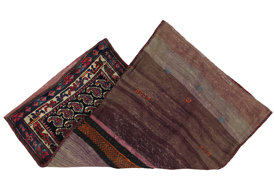 Saddle Bag Rugs : ​Horse saddle bags are made by Nomads for their own use. One can distinguish between the kilim-horse saddle bags and the knotted horse saddle bags. The front side of a knotted horse saddle bag is either knotted like a common rug with knots or different mixed techniques are used. The colours horse bags are dyed with are all natural and made by the Nomads themselves. Bags like these once carried everyday necessities for travelers on donkeys or horses. A delightful piece of art that provides a unique oriental atmosphere to your home. Horse saddle bags can be used as a seat cushion, as a floor cushion eg in front of your fireplace or as a wall decoration. Smaller horse saddle bags can be used as a newspaper holder to store newspapers or magazines when slung over a chair or sofa.