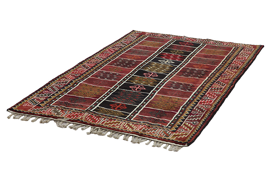 Flat woven at one or both ends of the rug's width: In some rugs the nomads weave at fringes on a narrow Kilim one or both sides of the width, or they weave them artistically into small braids. It is a technique various weavers use for a greater durability or simply to demonstrate their skill. Examples