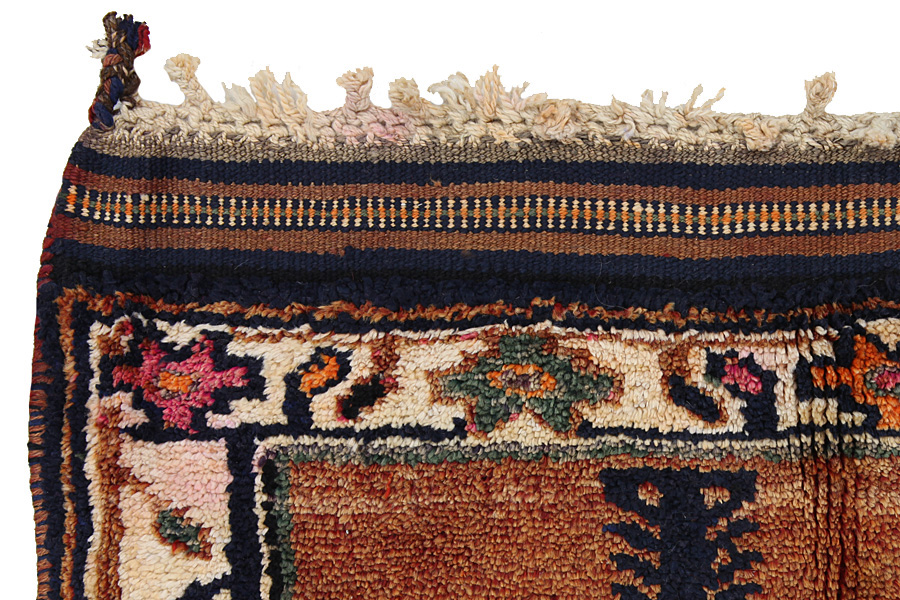 Flat woven at one or both ends of the rug's width: In some rugs the nomads weave at fringes on a narrow Kilim one or both sides of the width, or they weave them artistically into small braids. It is a technique various weavers use for a greater durability or simply to demonstrate their skill. Examples