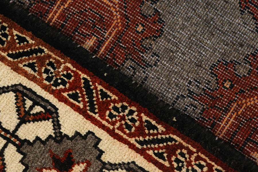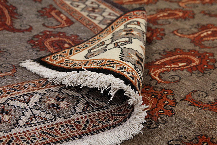 Abrash: Due to the different amount of grease in the wool and the added salt during the process of dyeing, the wool has got a varying colour absorbance. This is not very visible before weaving. During the weaving though, lines of the same colour are formed in the rug. This is called Abrash (which in Farsi means little cloud) and it shows that the wool was not manufactured using chemical means and marks the naturalness and authenticity of the rugs. Examples