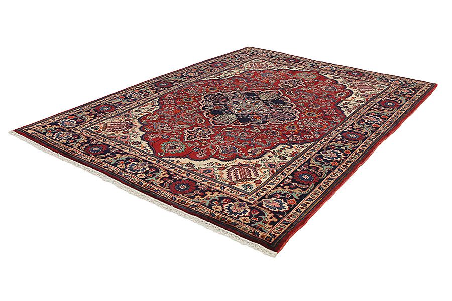 Tabriz Rugs : The city of Tabriz is the capital of Azerbaijan province in Northwestern Iran. Tabriz supplied the West with masterpieces that were made by renowned and very capable weavers. Their high quality of Tabriz rugs made them renowned in world markets. Many workshops where created where hand-woven rugs with very high density knots and high quality materials where woven. Silk and fine quality wool establish these rugs as very high class. No other city in Persia produced such large quantity or variety of rugs. With or without a medallion, their designs are full of imagination and individuality. Flowers, scenes, stanzas of poems often decorate them. Their predominant colours are beige, blue and red.