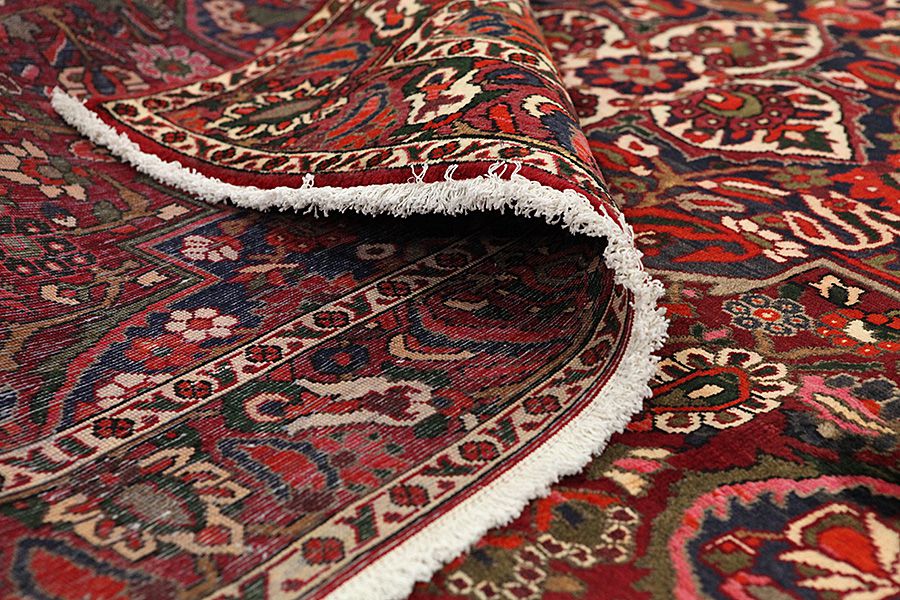 Bakhtiari Rugs : In the mountains Zagros, west of the city of Isfahan, around the town of Shahr-e-Kurd, live the nomads Bakhtiar. Their rugs are known for the design with various repeating squares in which flowers and animals are depicted. For this reason the design is called "garden"(Khesti). Their rugs are very durable with a dense weave and very good quality Persian wool coming from sheep grazing at a high altitude. The best Bakhtiari rugs with highest knot density are often called Bibibaff.