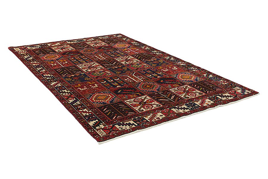Bakhtiari Rugs : In the mountains Zagros, west of the city of Isfahan, around the town of Shahr-e-Kurd, live the nomads Bakhtiar. Their rugs are known for the design with various repeating squares in which flowers and animals are depicted. For this reason the design is called "garden"(Khesti). Their rugs are very durable with a dense weave and very good quality Persian wool coming from sheep grazing at a high altitude. The best Bakhtiari rugs with highest knot density are often called Bibibaff.