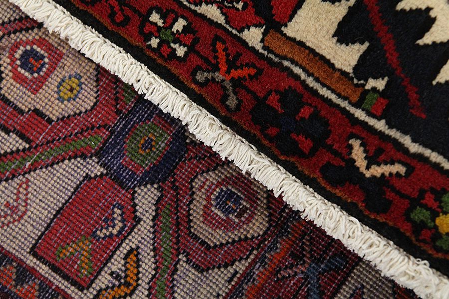 Abrash: Due to the different amount of grease in the wool and the added salt during the process of dyeing, the wool has got a varying colour absorbance. This is not very visible before weaving. During the weaving though, lines of the same colour are formed in the rug. This is called Abrash (which in Farsi means little cloud) and it shows that the wool was not manufactured using chemical means and marks the naturalness and authenticity of the rugs. Examples