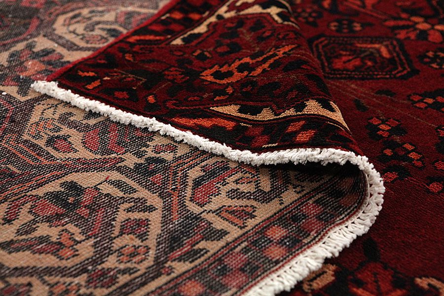 Abrash: Due to the different amount of grease in the wool and the added salt during the process of dyeing, the wool has got a varying colour absorbance. This is not very visible before weaving. During the weaving though, lines of the same colour are formed in the rug. This is called Abrash (which in Farsi means little cloud) and it shows that the wool was not manufactured using chemical means and marks the naturalness and authenticity of the rugs. Examples